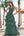 Donkergroene zeemeermin spaghettibandjes satijnen strik ruches lange bruidsmeisje jurk
