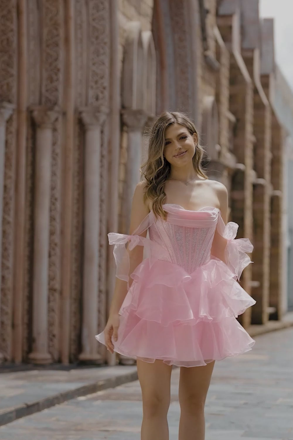 Sprankelende roze bandjes strik korset gelaagde kralen Homecoming jurk