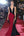 Rode schede korte mouw satijn diepe V-hals lange formele jurk