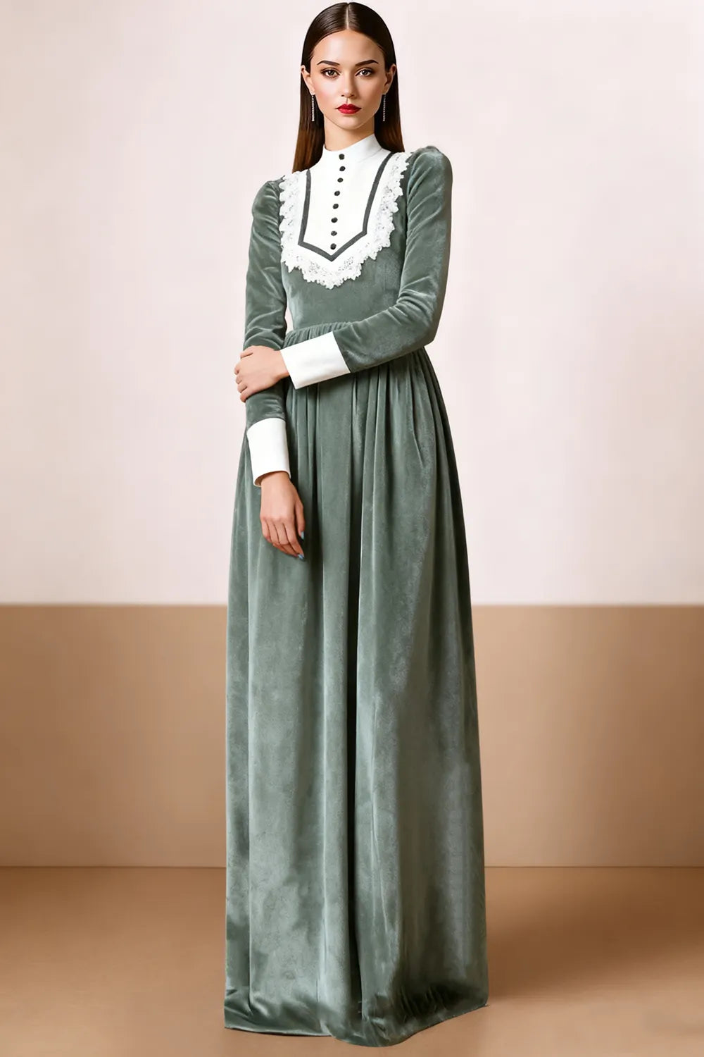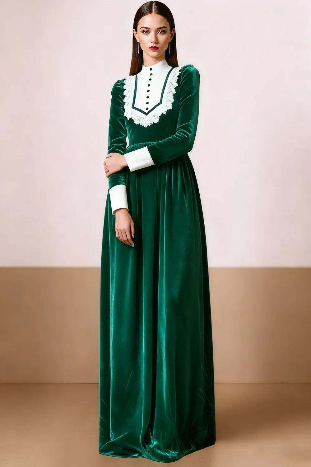 Zwart-wit fluwelen A-lijn lange formele jurk met hoge hals