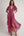 Verfraaide donkerroze V-hals A Line Floral Maxi formele jurk met ruches