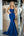 Navy Sweetheart gegolfde zeemeermin lange formele jurk met split