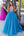 Sprankelende blauwe prinses V-hals pailletten tule lange galajurk