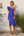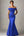 Koningsblauwe satijnen midi-jurk met één schouderschede