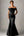 Zwarte strapless fluwelen sprankelende strikken lange formele jurk met hoge split (geen handschoenen)