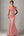Roze zeemeermin V-hals gegolfde mouwen satijnen lange galajurk