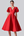 Rode A-lijn satijnen formele jurk met pofmouwen
