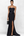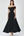 Zwarte strapless sprankelende strikken fluwelen lange formele jurk met hoge split (geen handschoenen)
