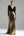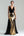 Sprankelende gouden en zwarte lange formele jurk met V-hals