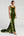Donkergroene zeemeermin Halter fluwelen ruches lange formele jurk met split