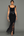 Zwarte schede satijnen halter lange formele jurk met sjerp