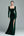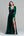 Donkergroene fluwelen lange formele jurk met fladderende mouwen