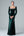 Donkergroene fluwelen formele jurk met lange mouwen en split