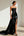 Zwarte fluwelen schede sleutelgat lange formele jurk met split