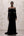 Zwarte chiffon schede boothals lange formele jurk met mouwen