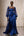 Koningsblauwe satijnen A-lijn formele jurk met ruches en lange mouwen