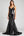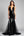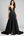 Zeemeermin diepe V-hals zwarte stropdas jurk met split