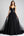 Zwarte satijnen spaghettibandjes met ruches High-Low formele jurk
