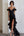A Line Spaghettibandjes Gegolfde Zwarte Stropdas Jurk Met Split