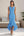 Blauwe fluwelen vierkante hals schede vakantiejurk met split