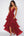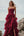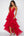 Gegolfde gelaagde rode chiffon spaghettibandjes formele jurk