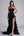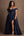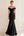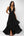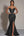 Zwarte stretch satijnen kant zeemeermin V-hals formele jurk met split