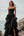 Zwarte A-lijn ruches chiffon gelaagde strapless formele jurk met split