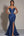 Marine Off The Shoulder Zeemeermin Gerimpelde Formele Jurk