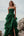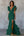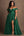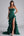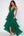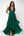V-hals donkergroene A-lijn lange formele jurk met ruches