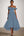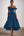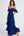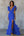 Koningsblauwe midi-jurk met vierkante hals met ruches