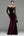 A Line donkerpaarse fluwelen formele jurk met lange mouwen