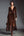 Coffee Velvet A-lijn formele jurk met lange mouwen en kant