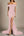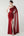 Rode schede korte mouw satijn diepe V-hals lange formele jurk