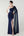Donkerblauwe satijnen jurk met een V-lijn V-hals en lange mouwen
