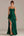 Donkergroene satijnen schede V-hals lange formele jurk met split