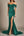 Donkergroene fluwelen lange formele jurk met spaghettibandjes en split