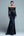 Marine satijnen vierkante hals A-lijn formele jurk met split