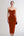Koffie Satijn V-hals Schede 3/4 Mouwen Formele Jurk