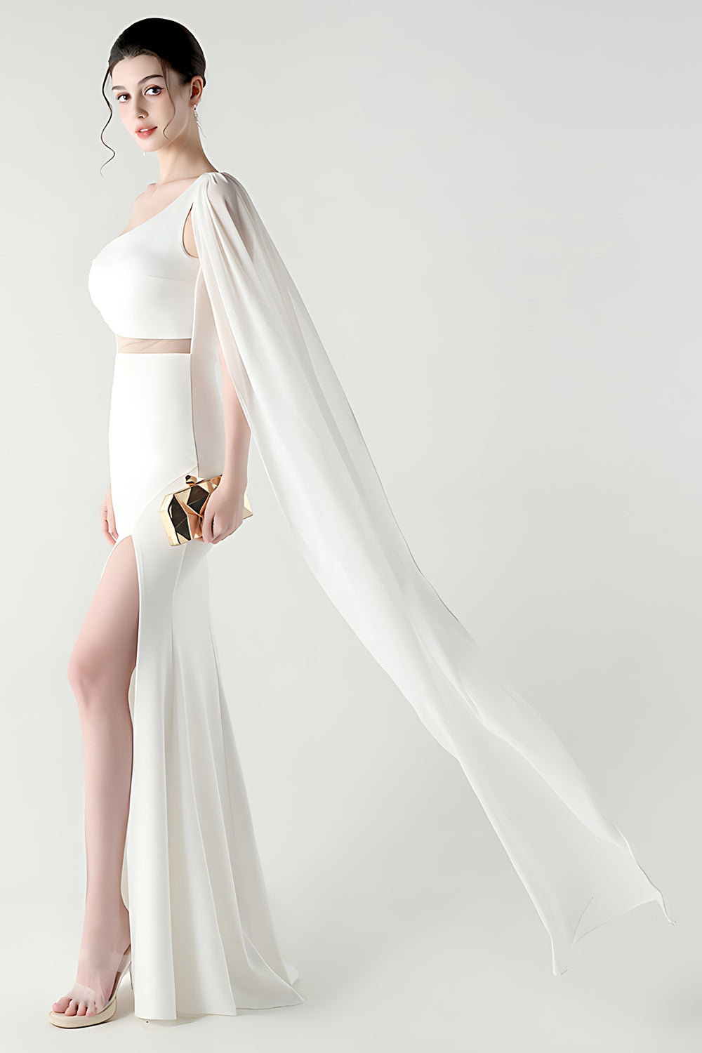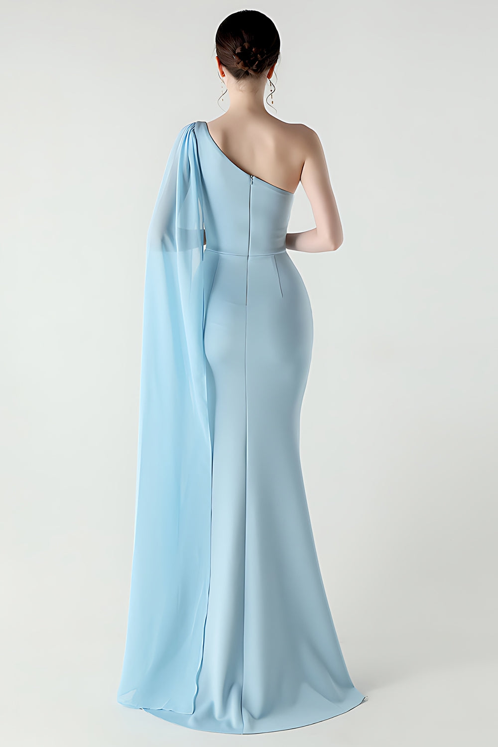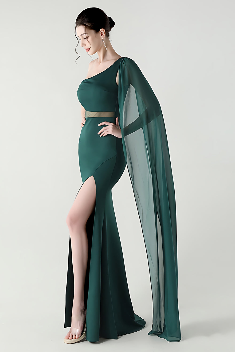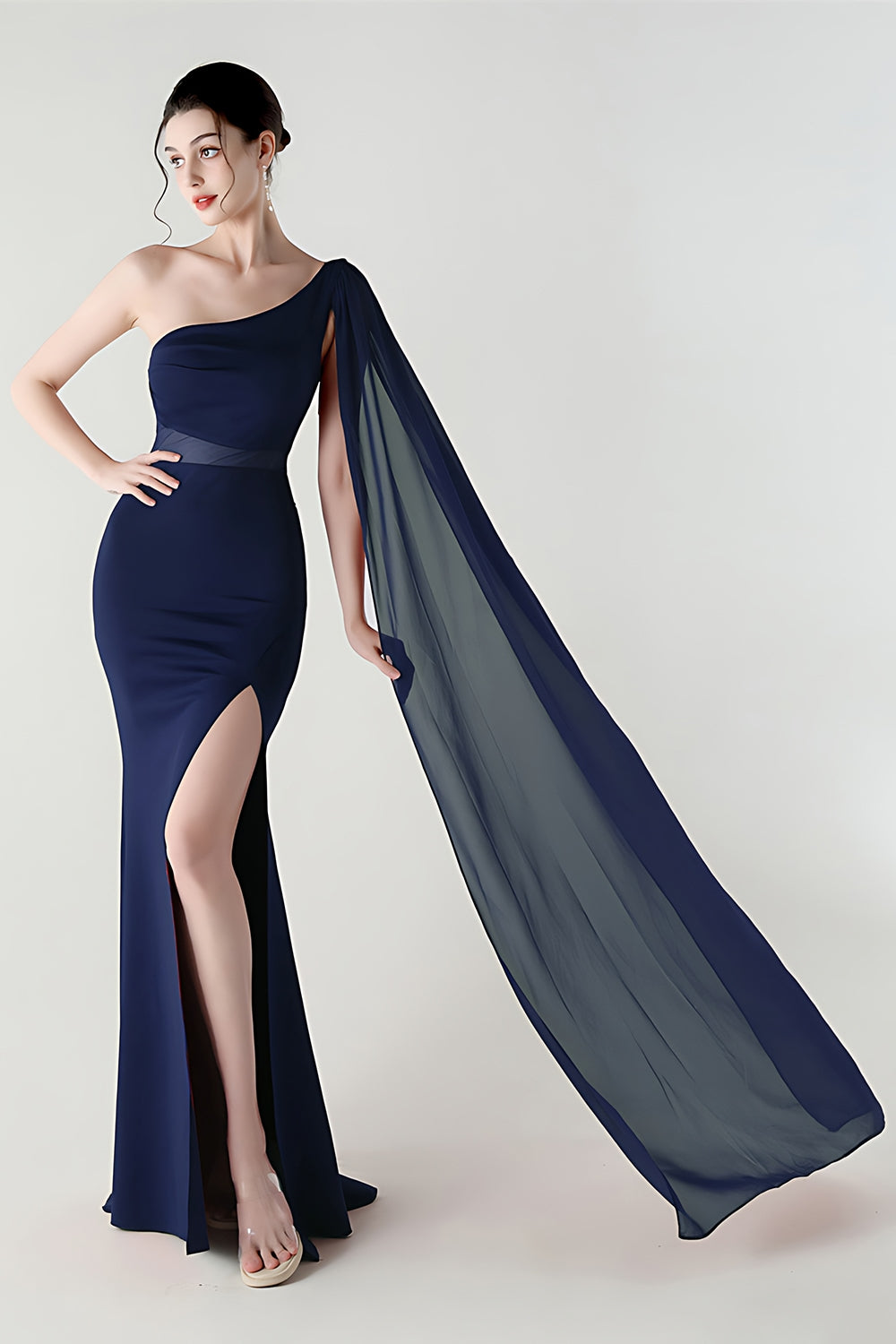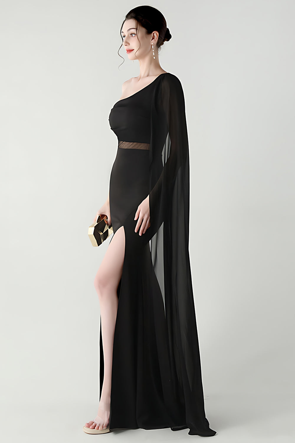 Eenschouder zwarte zeemeermin-streamer lange formele jurk met split