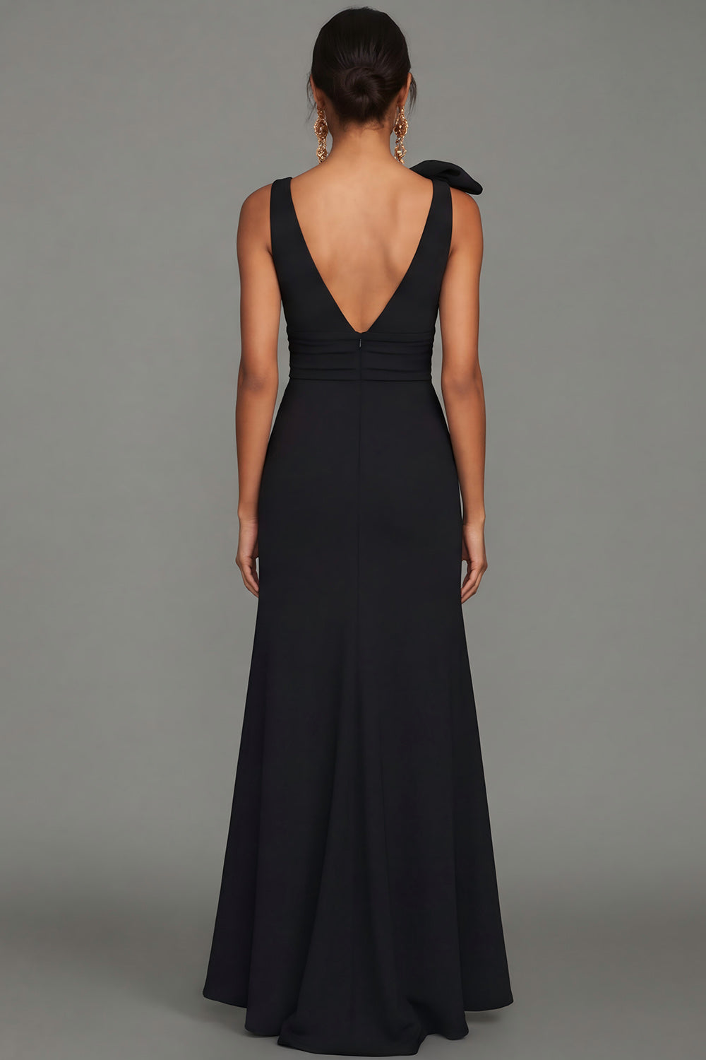 Zwarte V-hals lange formele jurk met strik