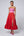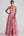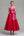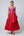 Fuchsia en rood strapless A-lijn korset met ruches midi formele jurk