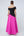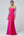 Formele midi-jurk met één schouder fuchsia en zwarte schede met split