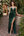 Olijfgroene spaghettibandjes Een lange formele jurk