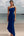 Satijn marineblauwe A-lijn formele jurk met spaghettibandjes