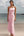 Roze satijnen midi-jurk met V-hals en strik