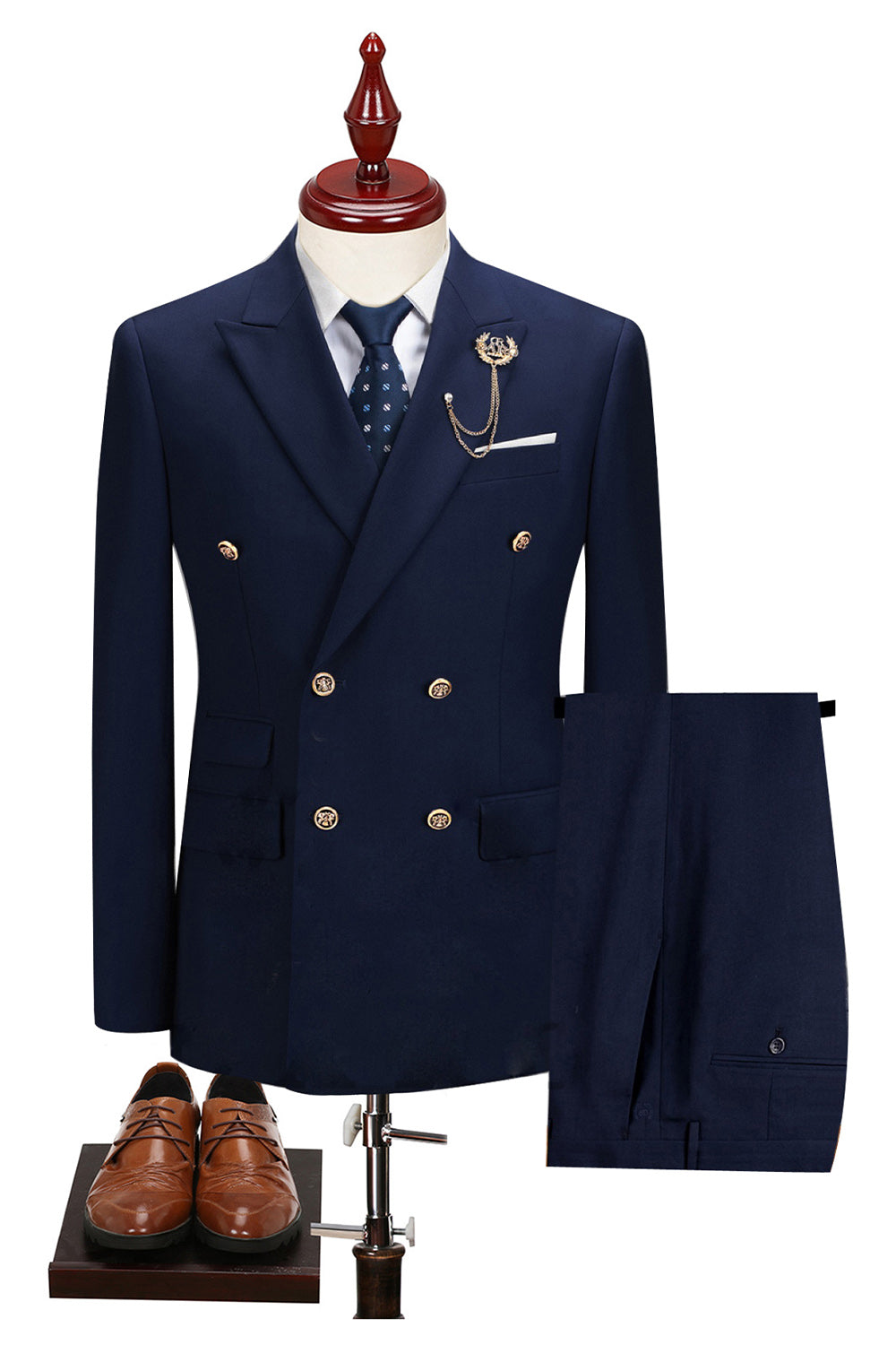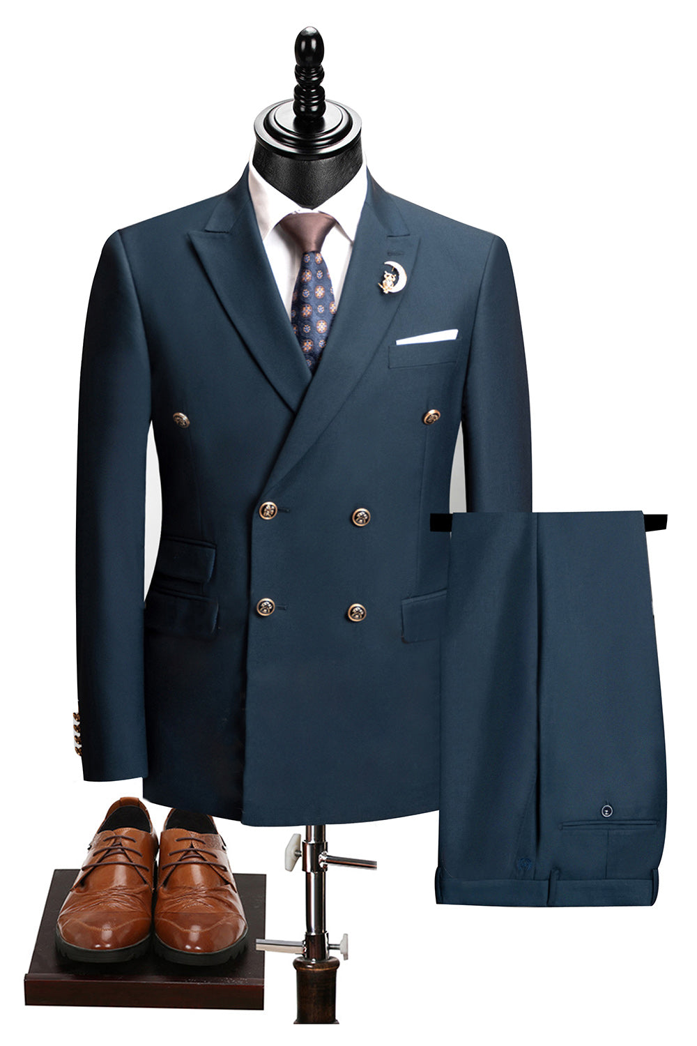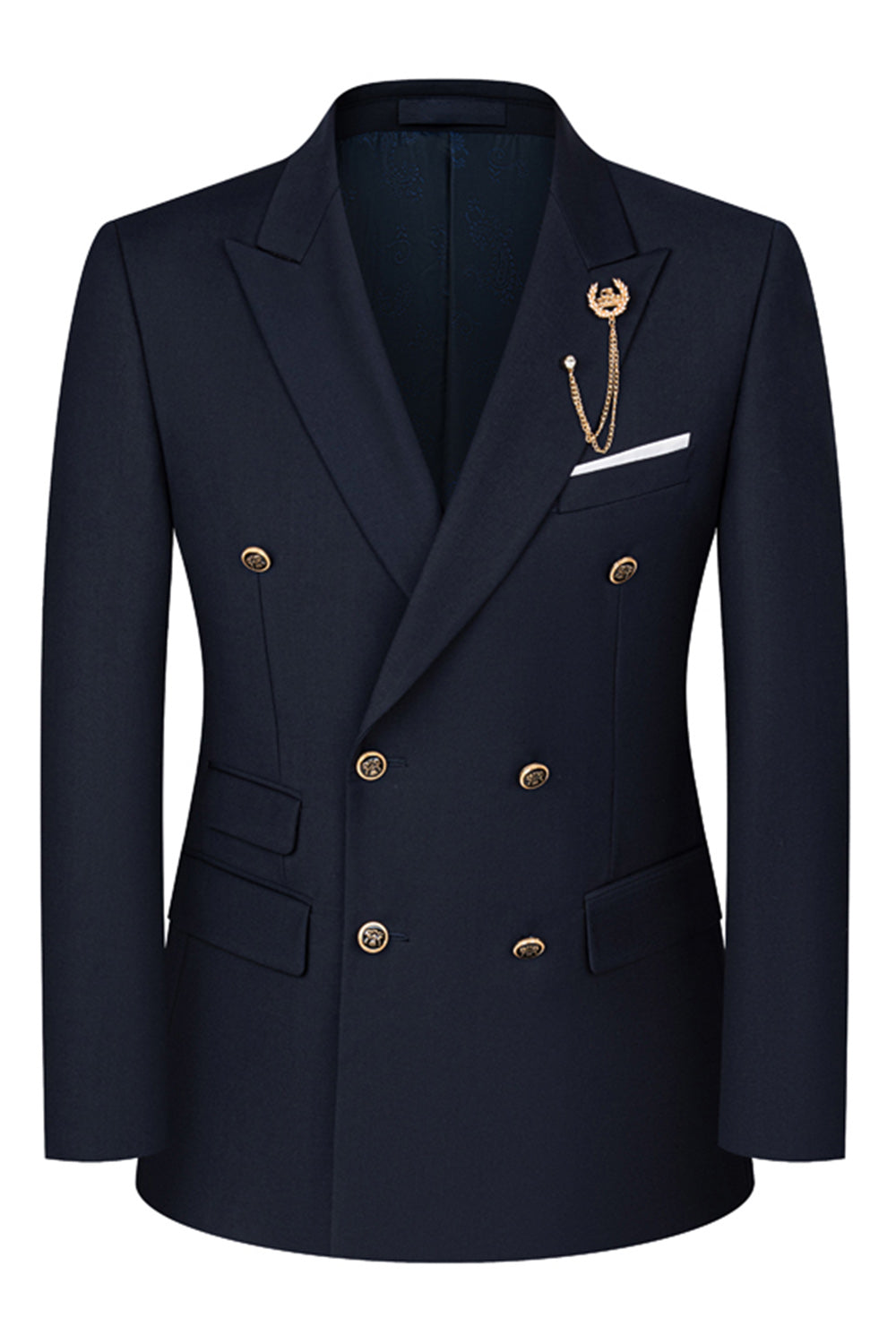 2-delige zwarte dubbelgerijzige herenpakken met piek