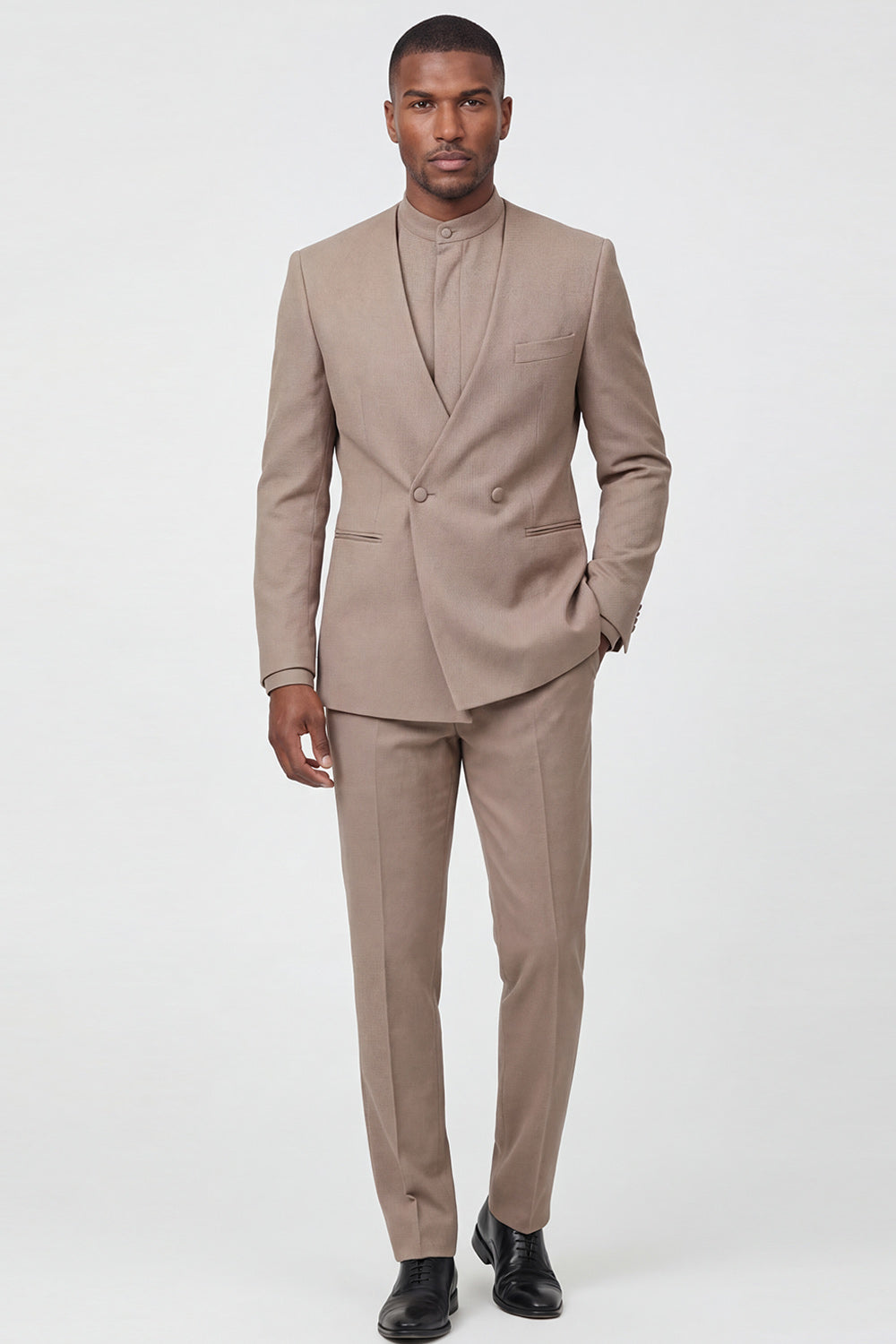 Beige dubbelgeknoopte tweedelige herenpakken formele pakken