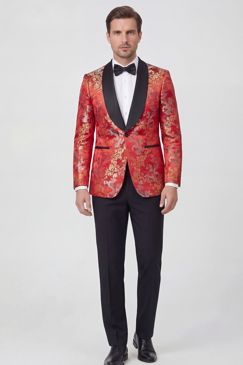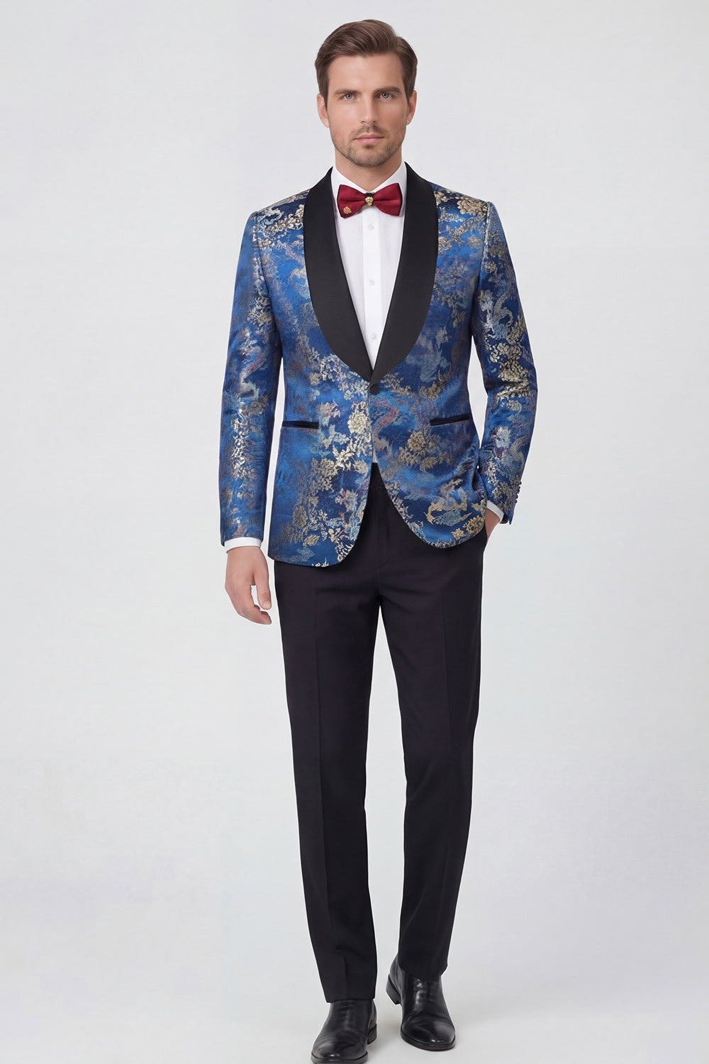 Blauwe 2-delige sjaalrevers met één knoop Jacquard herengalapakken
