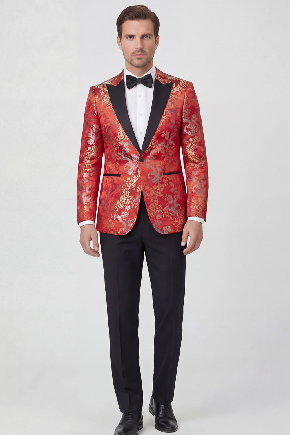 Rode tweedelige Piekrevers Jacquard herengalapakken met één knoop
