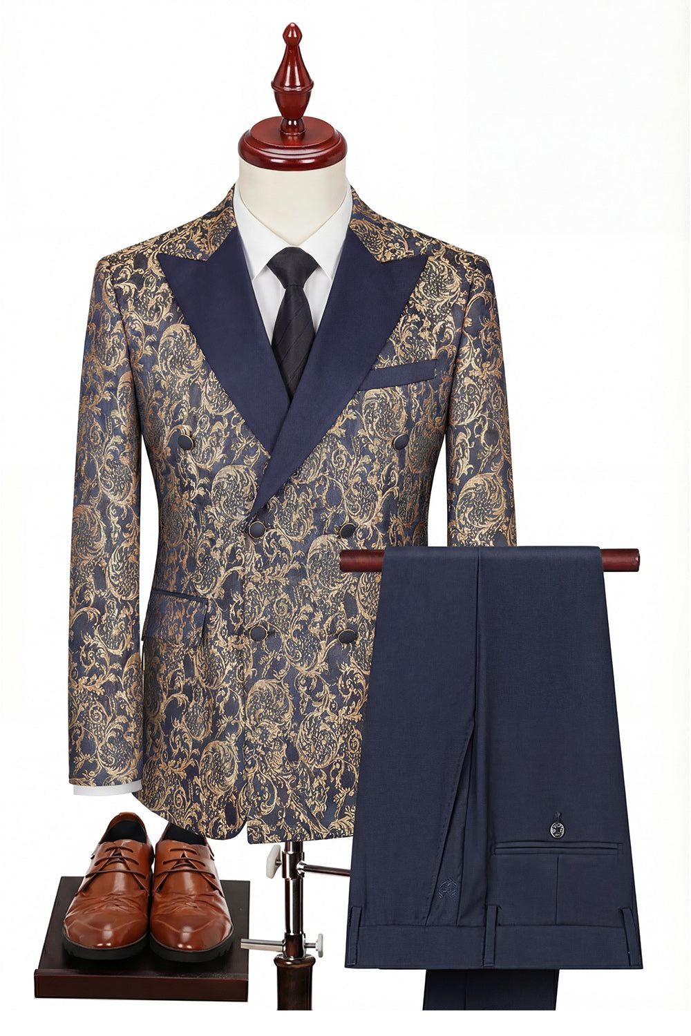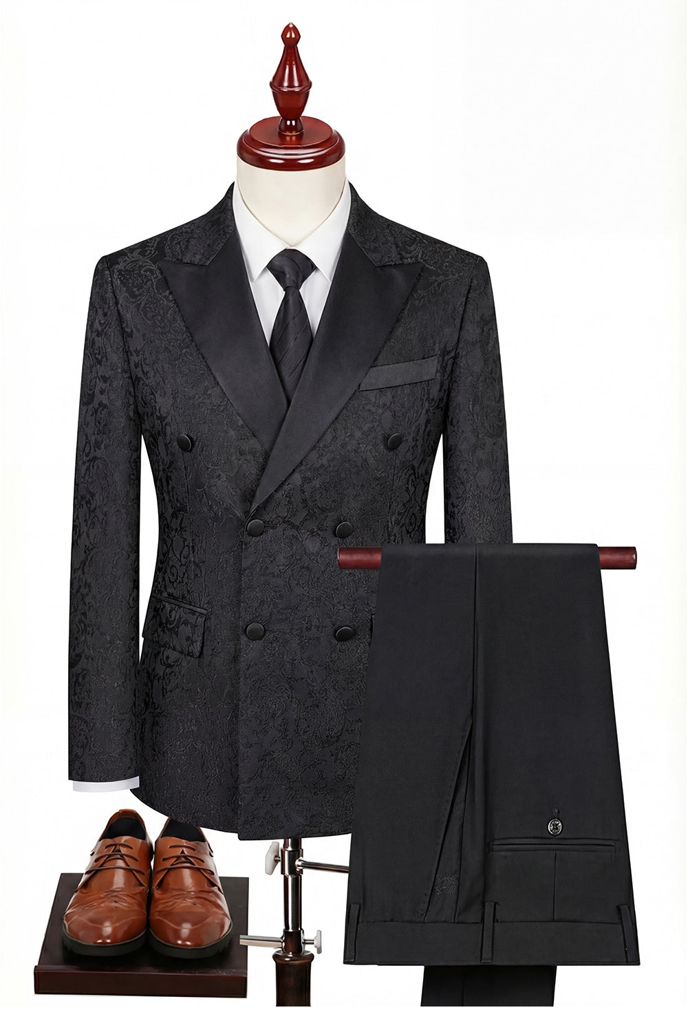 Zwarte dubbelrijzige driedelige herenpakken met piek en revers